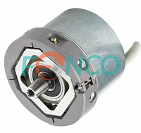 Габарит корпуса всего 58 мм. В стандартном исполнении может иметь разжимной фланец, он же служит компенсирующей муфтой, и два варианта упругого элемента для крепления корпуса. ельный вал является конусным 1:10. Исполнение с разжимным фланцем и конусным валом является широко распространенными. Такие датчики активно используются в моторах Siemens. Конструктивное исполнение возможно с кабельным выводом радиально.