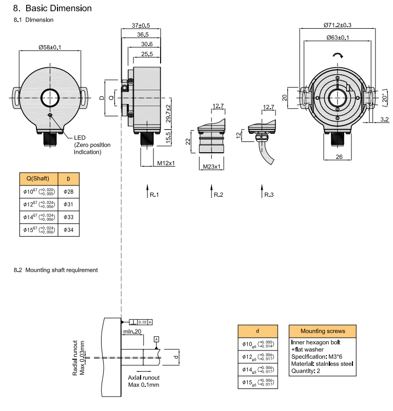 | Диаметр вала | 10 мм / 12 мм / 14 мм / 15 мм |