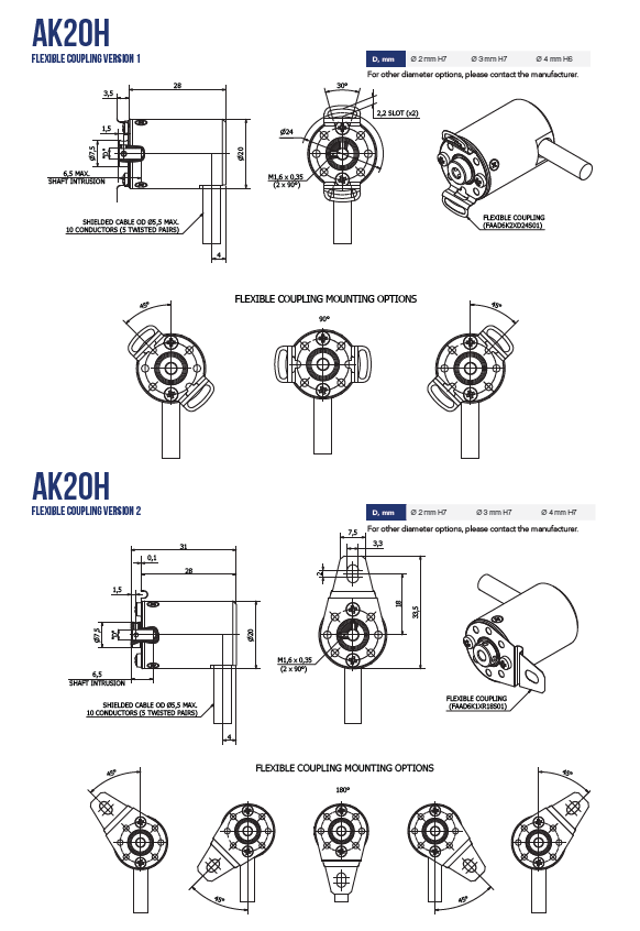 | Диаметр вала | 2 мм / 3 мм / 4 мм |