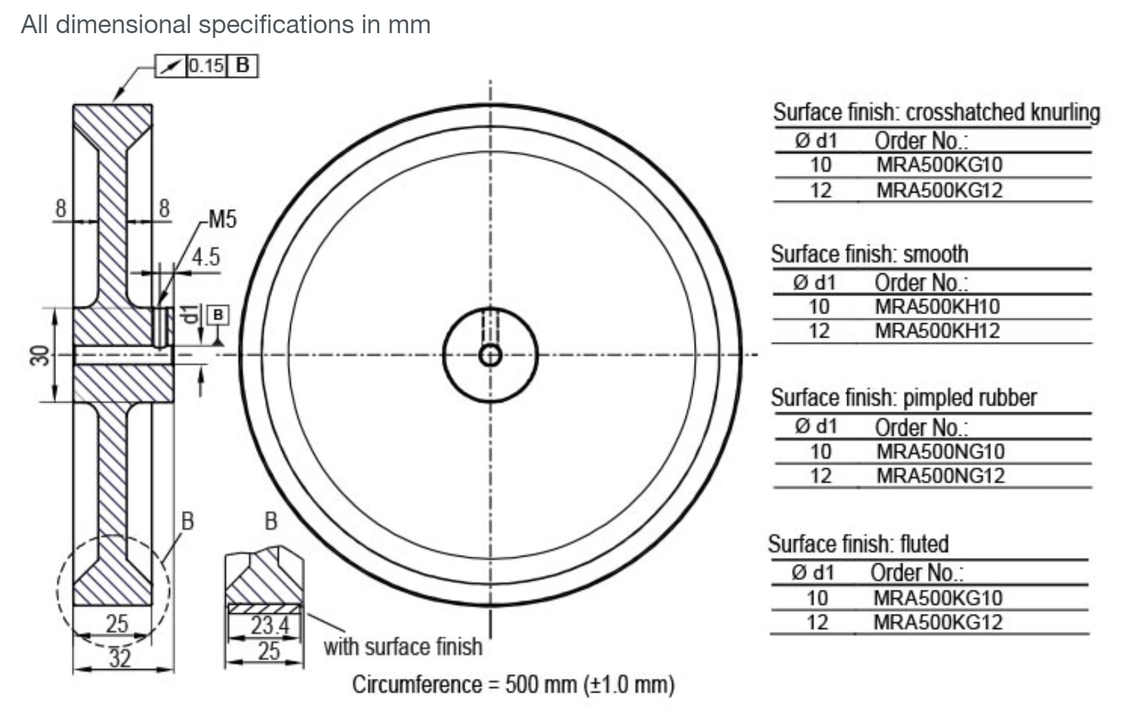 Характеристики измерительного колеса MRA500NG