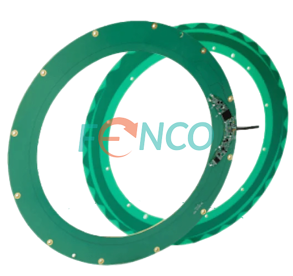 Энкодер модели VLT-247 представляет собой модульную конструкцию без подшипникового узла и корпуса. Его платы выполнены в виде колец высотой 9 мм. Ротор энкодера предназначен для установки на вал диаметром 171 мм и способен работать при экстремальных температурах от - 55°С до +125°С. Выходные сигналы могут быть представлены в форматах SSI или BiSS, с разрешением до 22 бит, обеспечивая высокую точность работы системы до ±0,006°.