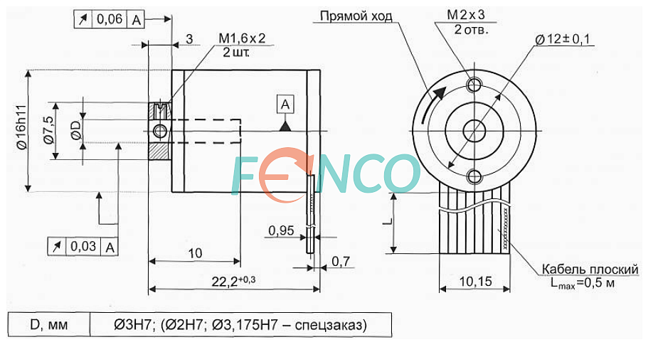 Абсолютный миниатюрный угловой энкодер ЛИР-ЛИР-ДА216В, диаметр корпуса 16 мм