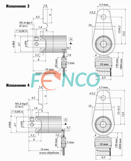 Напряжение питания энкодеров - 5 В. Выходной сигнал - TTL. Разрешение - 256 имп/об для моделей Е и Ж, 1024 имп/об - для модели А и Б.