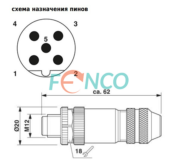 Разъем M12 5pin тип B служит для электрического подключения энкодера и последующей передачи сигнала по кабельным трассам на систему управления или индикации.| Расположение контактов | тип B |