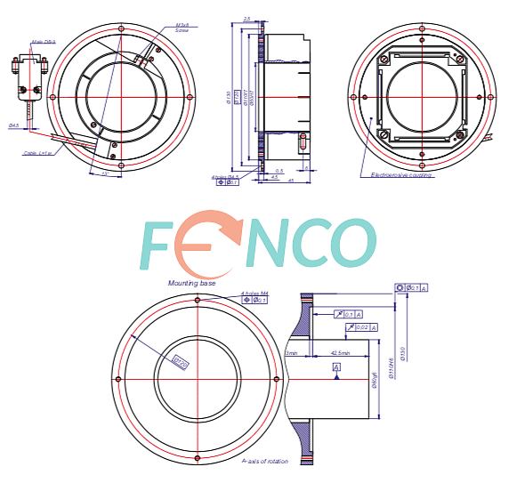 Габарит корпуса 110 мм подходит под общепромышленные требования. В стандартном исполнении имеет сквозной полый вал диаметром 60 мм. К заказу доступны исполнения с фланцем диаметром 110 и 130 мм. Конструктивное исполнение с радиальным выводом кабеля длиной 1 метр, с разъемом или без.